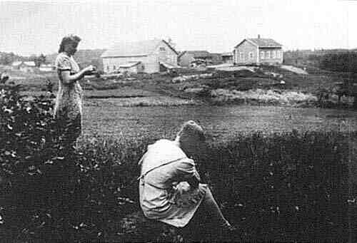 | | B3-26-003 : Näkymä Oksentiinmäen kylässä Kiiskin pihalta Aromäkeen päin. Kuvassa Matti ja Heikki Parikan kotitalo. Keskellä maantie Elisenvaara-Kurkijoki.