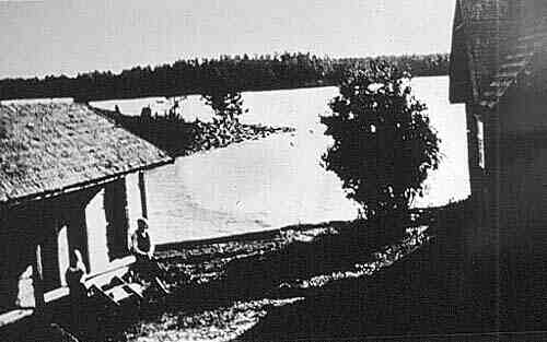 Ihojärven kylässä olleen Ihojärven pohjoisosaa. Osa järvessä ollutta saarta on näkyvissä. Kuva on Revon talon pihasta.