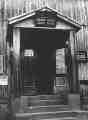 Entisen seurakuntatalon sisäänkäynti, jonka yläpuolella on kilpi "Yhteysosasto". | B4-20-010-0317
