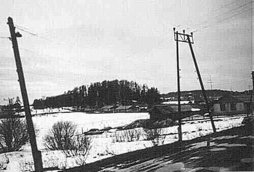 Nykyistä Otsanlahtea. Kuva on Ohtolan tienristeyksestä. Oikealla oli suntio Heikki Tirrin omistama talo, jossa toimi alakansakoulu. Talo paloi sotatoimien yhteydessä 1941. Kuvan oikeassa ylänurkassa oli kappalaisen pappila, joka myös paloi sotatoimissa. Oikeassa laidassa oleva maantie vie Sortavalaan. V. 1987.