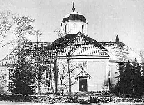 | » Kirkon eteläpuolelta opistolle päin. Kuvan keskellä on Linnamäki ja sen kohdalla uudelleen vuorattu entinen maamiesopiston päärakennus, jonka oikealla puolella on koulutilan meijeri ja vasemmalla puolella maamiesopiston entinen oppilasasuntola. Kuvassa näkyy myös hieman joen yli johtavaa siltaa. | ||||||||||||||||||||||||||||||||||||||||||||||||||||||||||||||||||||||||||||||||||||||||||||||||||||||||||||||||||||||||
