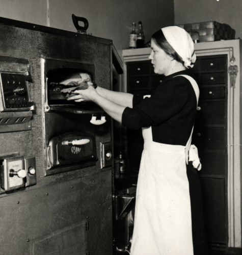Aromäki, Elsa Uimonen ottaa ruokaa uunista. K. vv. 1930-39. Kuva P. Kyytinen (C1-02-006) (ja302) | ||||||||||||||||||||||||||||||||||||||||||||||||||||||||||||||||||||||||||||||||||||||||||||||||||