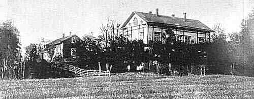 Kurkijoen kanttorila Otsanlahden Papinmäellä. Rakennukset poltettiin talvisodan loputtua. | E1-27-019-1009