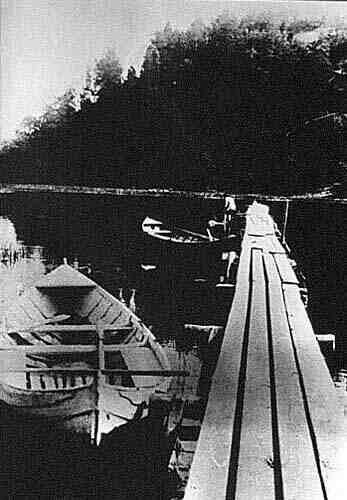 Rovastin pappilan uimalaituri, johon myöhemmin rakennettiin uimakoppi. Taustalla Ryyhänmäki. Valok. Elsa Arokallio. | E1-27-020-1010 (L0322) E1-27-021-dkad | (L0385) Sama= (P3-27-003-2734)