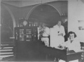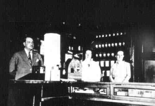 Elisenvaaran apteekki sisältä. Vasemmalta apteekkari Assari Linnala, Kerttu Linnala ja farmaseutti Meri Kock.