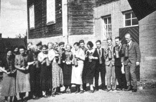 Elisenvaaran yhteiskoulun 6. luokkalaisia keväällä 1939 koulurakennuksen itäpäädyn rapuilla.