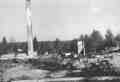 Elisenvaaran yhteiskoulun rauniot syksyllä 1941. Taustalla näkyy tulipalossa säilynyt maanviljelysneuvos Ina Relanderin omistama talo, jossa koulu aloitti toimintansa syksyllä 1942.