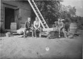 Kurkijoen koulutilan pajasta. Vasemmalta Juho Jääskeläinen, Uuno Salonen ja Heikki Salonen. | M3-20-057-2174 (L0871) M3-20-058-2175 (vrt. M3-03-036 (L0364))