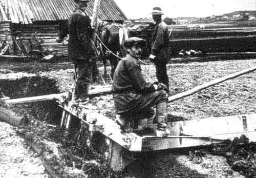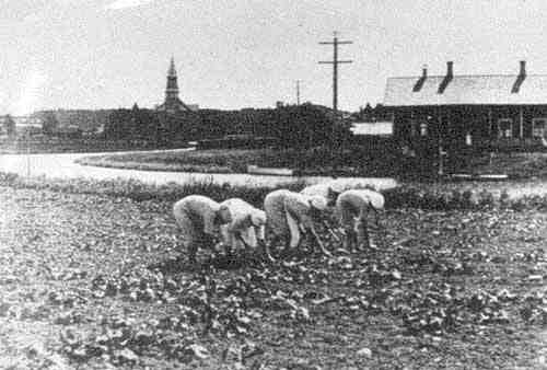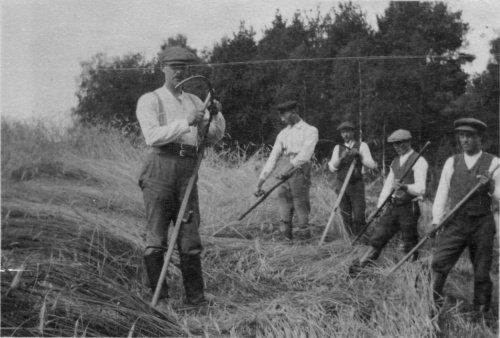 Kanakaalin kitkijöitä Kurkijoen koulutilan pellolla v. 1931. Kuva on Heinsillan läheltä Kurkisiin pellolta. Oikealla pomona toiminut opiston oppilas Karvonen.