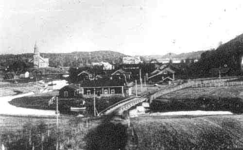Kurkijoen koulutilan sauna-rannassa oli venelaituri. Kuvassa näkyvä silta johtaa Raholanjoen yli ns. Sipilän-mäelle, jossa oli koulutilan tilanhoitajan asunto.
