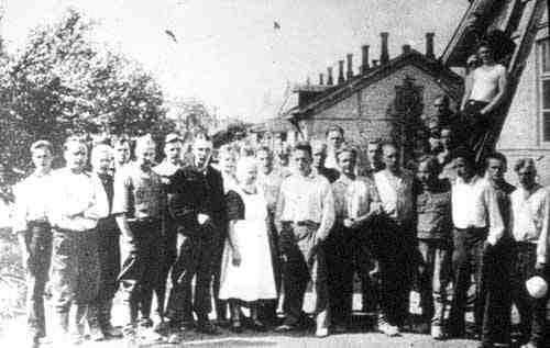 Kurkijoen koulutilan työmiehiä. Äärimmäisenä oikealla työnjohtaja Oskari Heinonen. | M3-20-043-2160