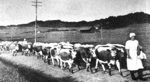 Kurkijoen koulutilan karjaa siirretään laitumelle. | M3-20-035-2152
