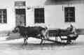 Kurkijoen koulutilalla harrastettiin tälläistäkin ajoa. Kuvassa härkävaljakko koulutilan konttorin edessä.