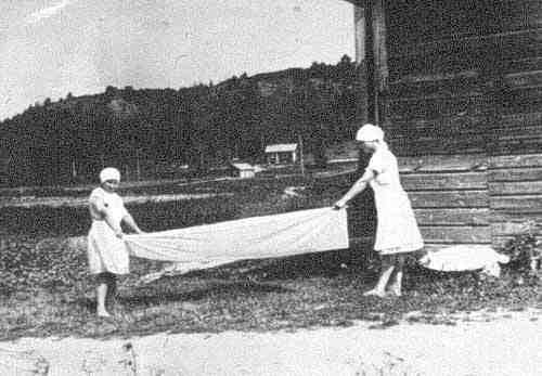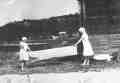 Pyykin laittoaKurkijoen koulutilalla. Taustalla näkyy Hiidenmäki. | M3-20-041-2158