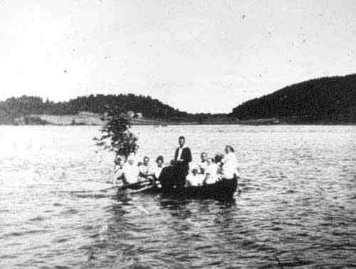 Karjanhoitokaulun oppilaita venematkalla Laikkalanlahden Rakkaus-eli Likosaareen juhannuksena. | M3-20-049-2166