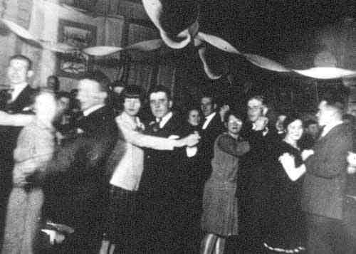 Maamiesopiston oppilaat järjestivät vuosittain muutamia juhlia, kuten uusien oppilaiden vastaanottojuhla, pikkujoulu ja vappujuhla. Näihin kutsuttiin Lopotin silmäätekeviä henkilöitä ja tietenkin nuoria naisia. Kuvassa tanssin pyörteissä opiston joulujuhlassa v. 1928. Kuvan keskellä tanssii konstaapeli Onni Jälkö.