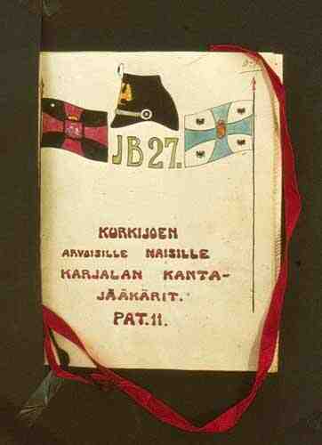 Karjalan kantajääkäreiden ja pataljoona 11:n tervehdys Kurkijoen naisille vapaussodan aikoina. Tervehdyksessä on nimiä kaksi täyttä sivua. P1-00-001-2502 (d294) | ||||||||||||||||||||||||||||||||||||||||||||||||||||||||||||||||||||||||||||||||||||||||||||||||||
