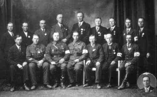 Vapaussodan rintamamiehiä kokoontuneina palokunnan talon portaille Lopotissa. P1-00-003-2504 (d297) (L0762)(L0958) | ||||||||||||||||||||||||||||||||||||||||||||||||||||||||||||||||||||||||||||||||||||||||||||||||||