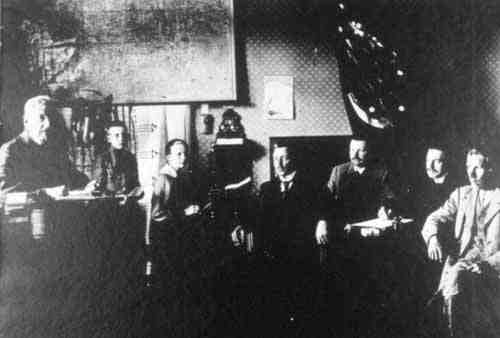 : P1-20-001-2513 (d295)Vapaussodan aikana perustettiin Lopottiin esikunta, jota tämä kuva esittää. Vasemmalla esikuntapäällikkö Erik Hällström, sihteeri Lyyli Lind, hevospäällikkö Kaarlo Gummerus, talouspäällikkö Emil Hurme, kansliapäällikkö Z. Cleve ja toinen hevospäällikkö Paavo Kiiski. Esikuntaan kuului vielä vartiopäällikkö Antti Taskinen. (L1149) (L0760) (N376) | |||||||||||||||||||||||||||||||||||||||||||||||||||||||||||||||||||||||||||||||||||||||||||||||||||