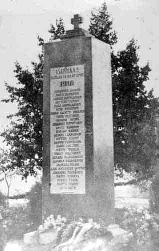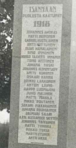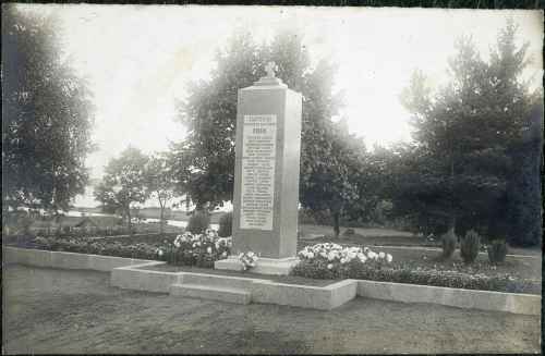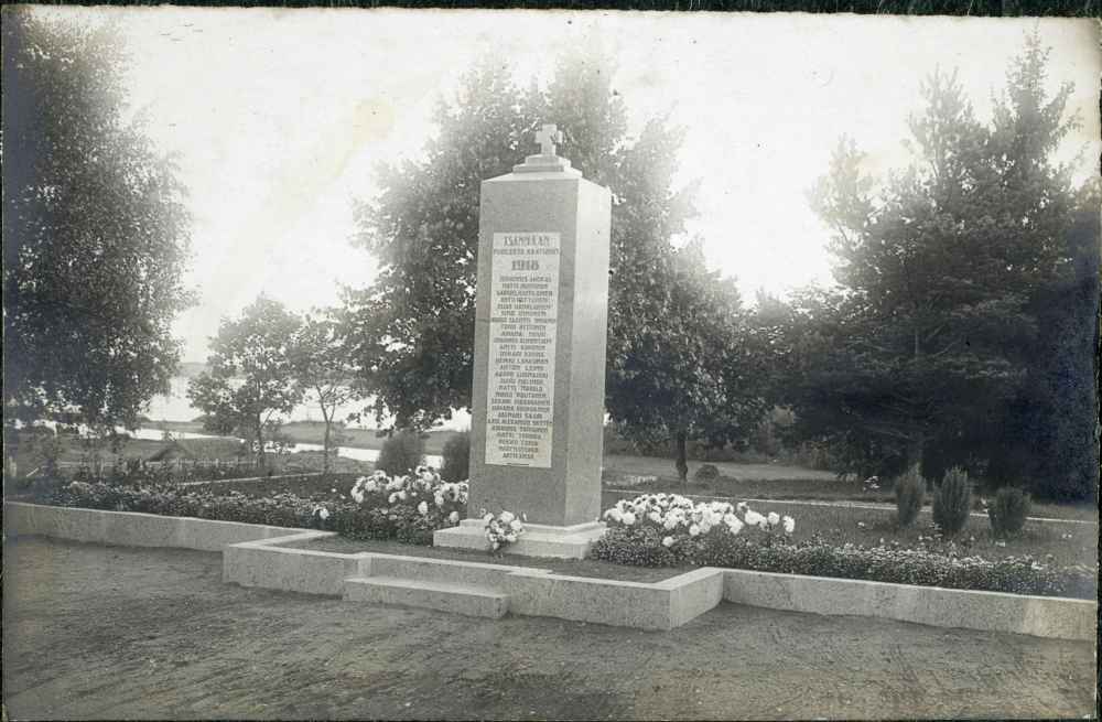 Elsa Arokallion suunnittelema Kurkijoen sankaripatsas, johon on kaiverrettu 27 kaatuneen nimet. Patsas paljastettiin syyskuun 26.päivänä 1920. (L0768) P1-20-003-2515 (d296) | ||||||||||||||||||||||||||||||||||||||||||||||||||||||||||||||||||||||||||||||||||||||||||||||||||