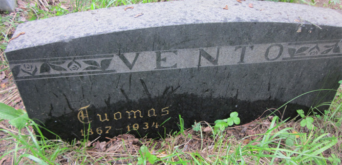 Vento Tuomas 1867–1934. 2C:3:10 (uusi kuva, jossa nimi ja vuodet näkyvät hyvin) Kiiski Matti 1856–1929. Kurri Esko 1867–1934. 2C:2:15