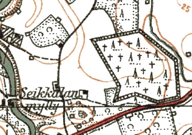 Kuva 2. Uusi hautausmaa vuoden 1930 topografikartassa.